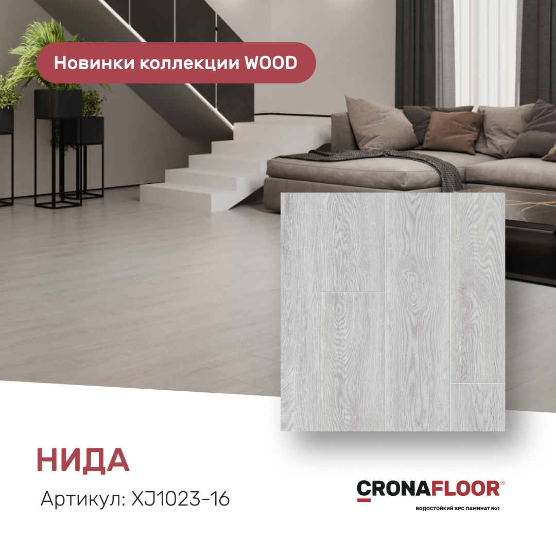 Модные тренды не стоят на месте. За ними почти невозможно угнаться, однако нашим дизайнерам это удалось. Представляем вам 5 новых декоров SPC ламината из коллекции WOOD от CRONAFLOOR.
