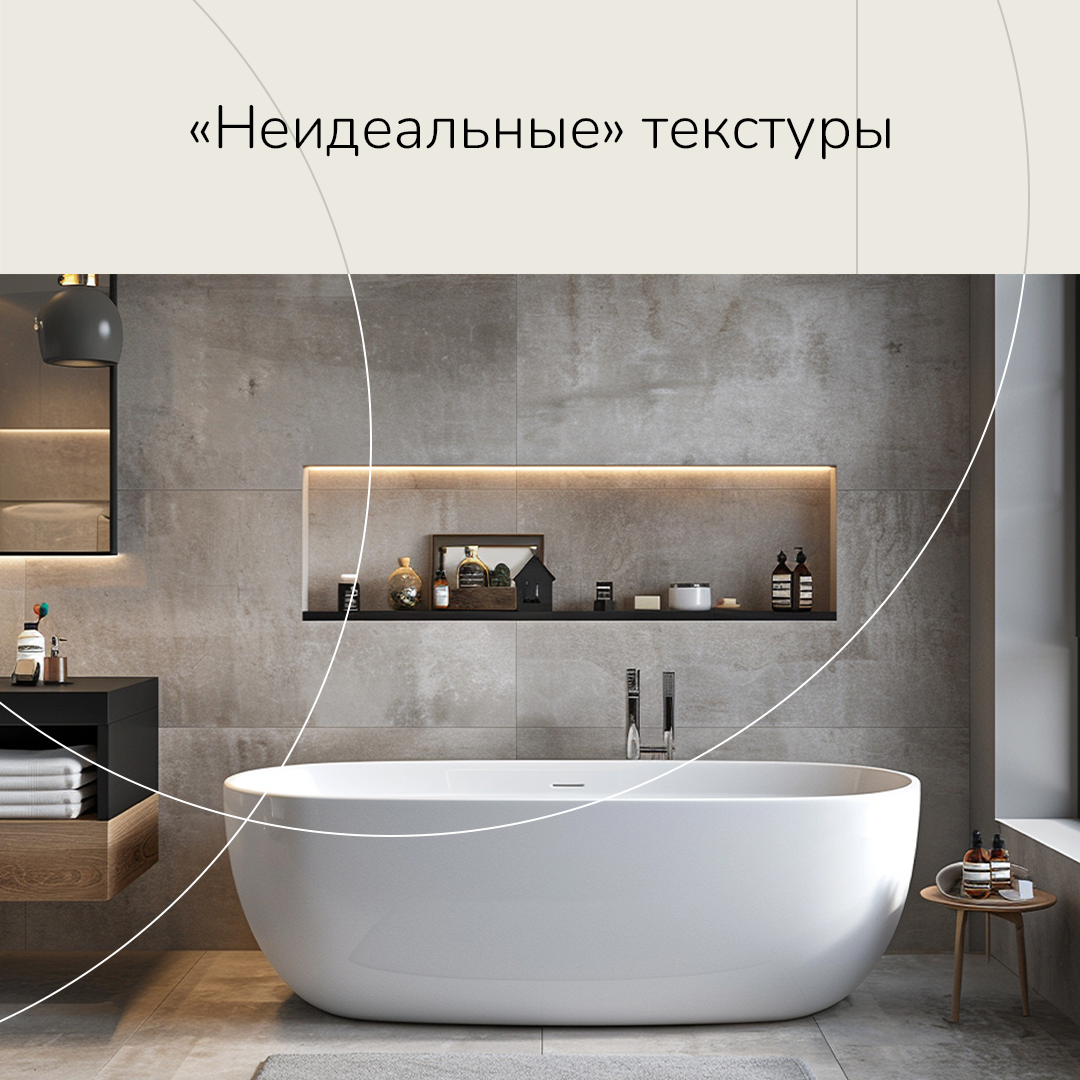 Тренд на естественность и аутентичность выражается в использовании «неидеальных» текстур. Это могут быть поверхности с грубоватой отделкой, шероховатые материалы или камень с естественными дефектами. Такой подход создает ощущение натуральности и связи с природой, делая ванную комнату более уютной и теплой. Важно, чтобы эти текстуры были приятными на ощупь, поэтому лучше выбирать их самостоятельно.