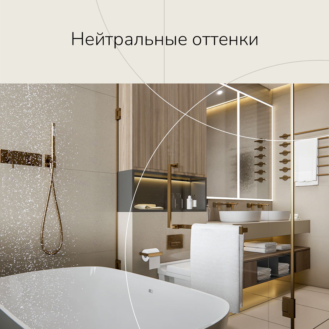 Нейтральные цвета продолжают оставаться популярными, однако в 2024 году они приобретают новые значения. В дизайне ванных комнат преобладают мягкие, приглушенные оттенки серого, бежевого, кремового и песочного. Эти цвета создают спокойную и расслабляющую атмосферу, а также служат идеальным фоном для более ярких акцентов, таких как живые растения или декоративные элементы.