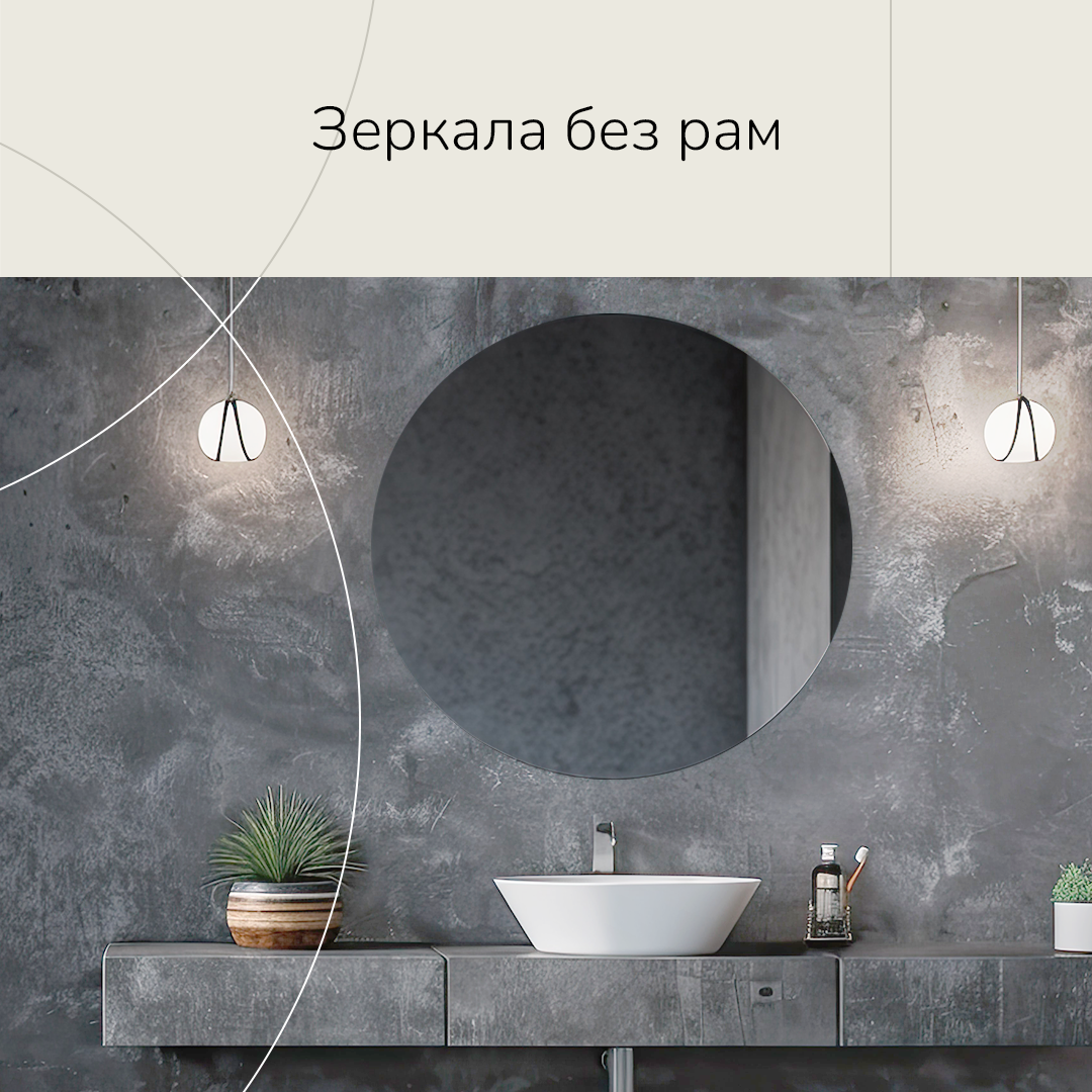 Зеркала без рам — отличный инструмент и минимализма, и современного стиля. Они визуально расширяют пространство и делают его светлее и просторнее. Выбирайте подходящую вам форму и размер отражающей поверхности и не забывайте про возможность встроить подсветку, чтобы сделать пространство ещё более функциональным.